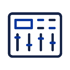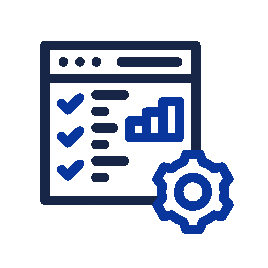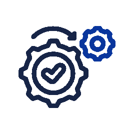 • Icon of gears and a checkmark symbolizing settings, configurations, or process completion.