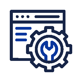 • Icon of a web browser window with a gear and wrench overlay, representing website settings or configuration.