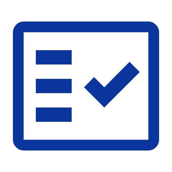 • Icon of a checklist with three horizontal lines and a large checkmark to the right.